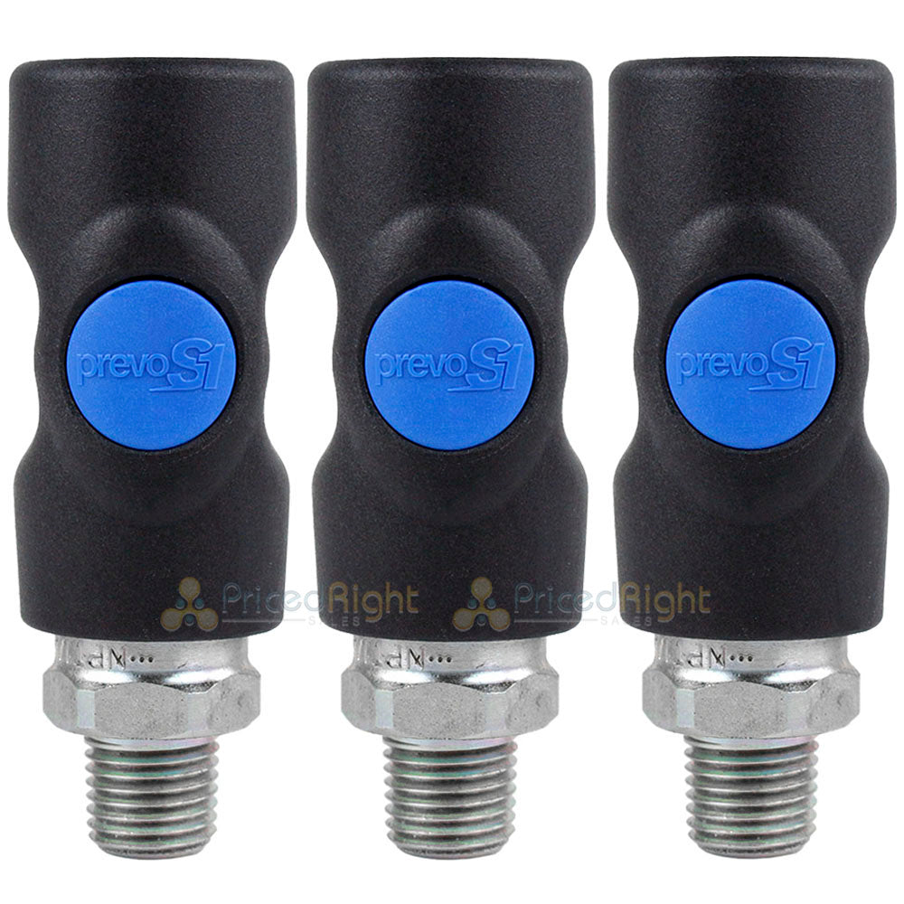 2 Prevost ISI061253 1/4" body air coupler with 1/2" male npt inlet threads. These are very high quality Prevost couplers that feature a non-marring, impact resistant, high grade composite body. These couplers are easy to use for anyone and is built for safety and high efficiency! The quick release button on this coupler allows you to easily release plugs with one hand! It also purges the air on everything down line, such as air hose and tools, so that there is no hose whipping or sudden pressure releases. This coupler features a 1/4" body and has a 1/2" male NPT threaded inlet.This coupler is compatible with Prevost Industrial Interchange Style air plugs and has a 3 year manufacturer's warranty.